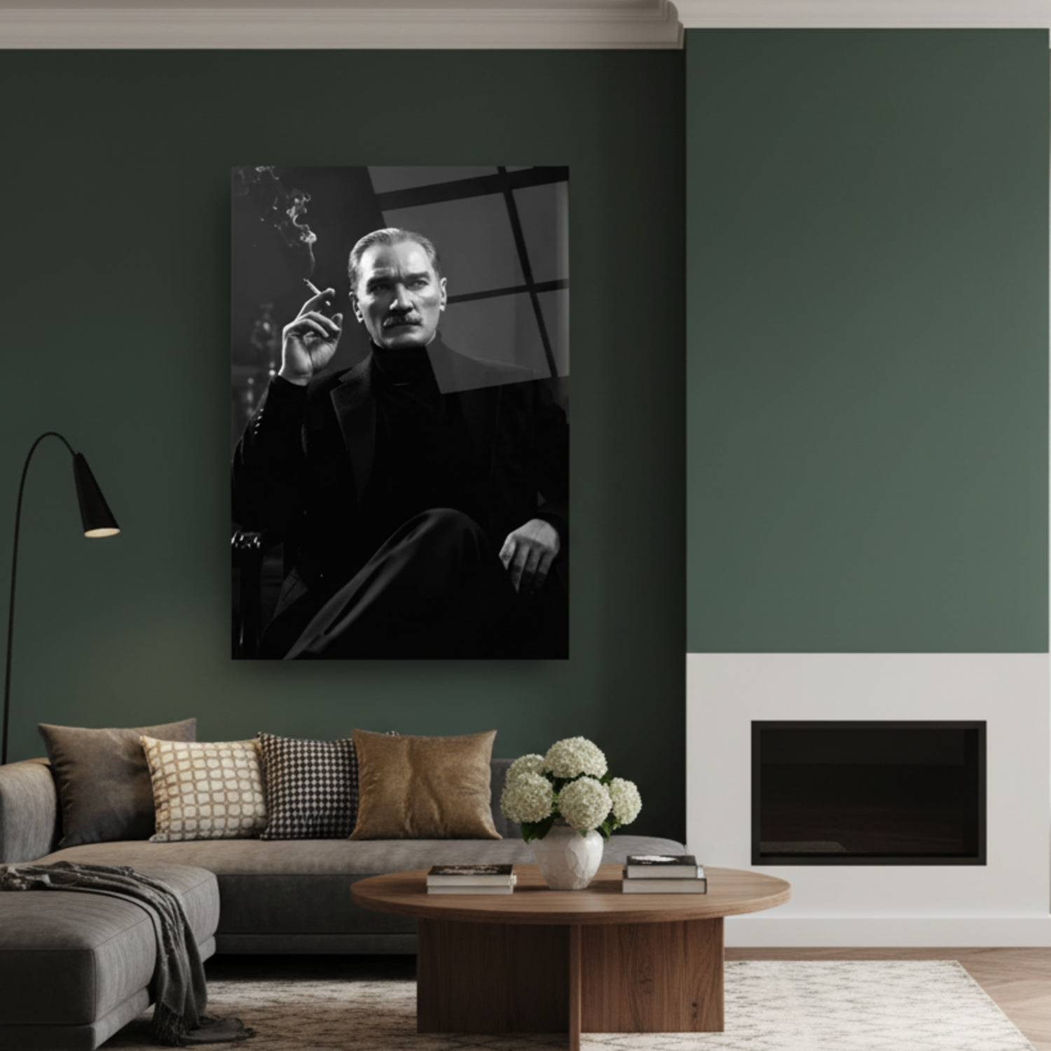 Bu kırılmaz modern cam tablo, Mustafa Kemal Atatürk'ün karizmatik siyah-beyaz portresiyle mekanınıza anında asil ve güçlü bir atmosfer katıyor. Gerçek temperli camdan üretilen bu sanat eseri, dayanıklılığı ve parlaklığı ile geleneksel tablolardan ayrılırken, modern dekorasyonun vazgeçilmez bir parçası olacak. Evinizde, ofisinizde veya çalışma odanızda tarihe saygıyı ve estetiği birleştiren bu ikonik eserle duvarlarınızı bir sanat galerisine dönüştür.