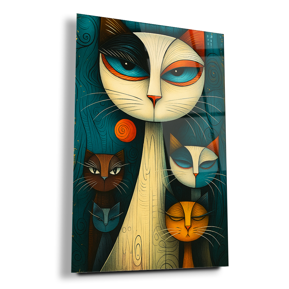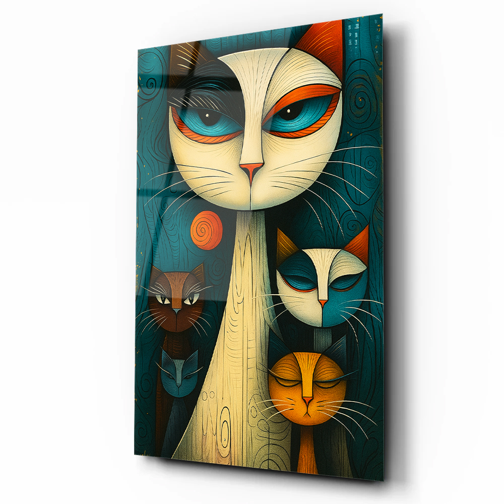 Premium Kalite'de Renklerin Kedileri Cam Tablo