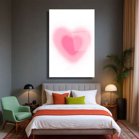 Pembe Kalp Cam Tablo
