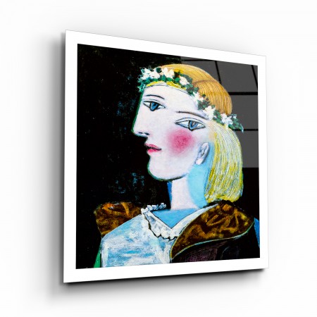Çiçek Taçlı Kadın Cam Tablo