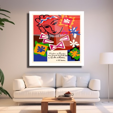 Çiçek Desenli Kadın Yüzü Cam Tablo